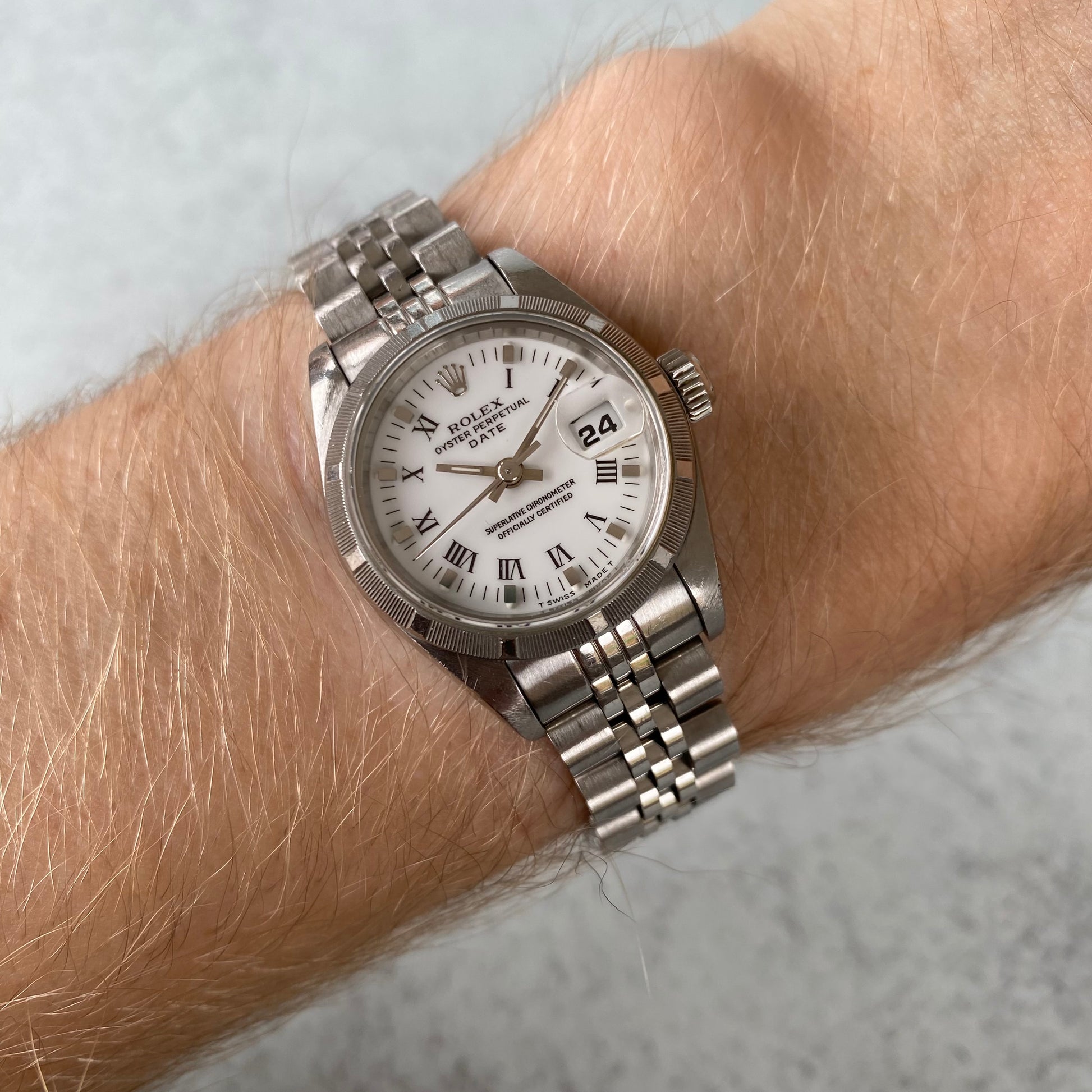 The watch has its original Rolex jubilee bracelet which works perfectly and looks exceptional. It’s a good size and will fit a wrist of 6 1/2 inches or smaller. If you require additional links please contact us prior to purchase and we can source some.